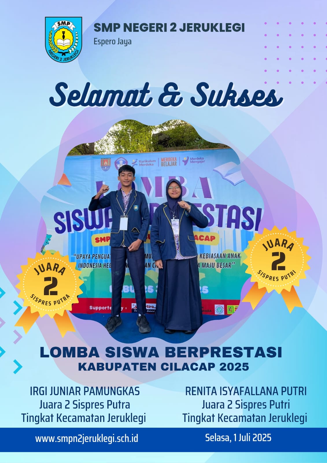 Prestasi terbaru siswa-siswi SMP Negeri 2 Jeruklegi : Youth Futsal Competition 2022 Ajibarang: Juara 1 Futsal Putri Juara 3 Futsal Putra Lomba Macapat Tingkat Kecamatan Jeruklegi: Juara 1 Macapat Putri [ … ]