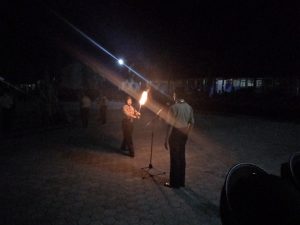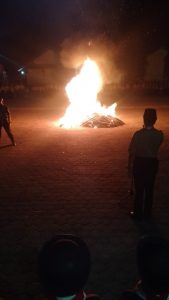 Upacara api unggun dalam rangka “Penerimaan Tamu Penggalang Gudep XI.09.03.01.095/096 SMP Negeri 2 Jeruklegi” yang dilaksanakan Sabtu malam tanggal 3 Agustus 2019.