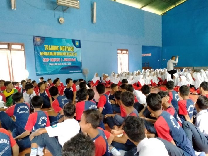 (Oleh: Ibu Siti Sutarmi, S.Pd) SMP Negeri 2 Jeruklegi selalu berusaha meningkatkan kualitas dan mutu sekolah baik peningkatan nilai output maupun budi pekerti sehingga kelulusannya cerdas dan berkarakter yang kuat. Salah satu usaha yang dilakukan adalah menyelenggarakan training motivasi membangun karakter siswa kelas IX. Training motivasi tersebut diselenggarakan pada tanggal 10 Februari 2020. Tempat yang sunyi di tengah perkebunan karet di gedung serba guna Wangoen Redjo Kaliminggir kecamatan Jeruklegi sengaja dipilih agar peserta bisa berkonsentrasi tinggi dikarenakan jauh dari pengaruh keramaian, hasilnyapun diharapkan bisa maksimal. Sasaran training motivasi membangun karakter adalah semua siswa kelas IX baik laki-laki maupun perempuan dengan jumlah 237 siswa. Bekerja sama dengan The Winner Institute dengan Bapak Subur Putra sebagai narasumber. Didalam ruangan yang nyaman, sunyi, dan udara sejuk semua siswa dengan tertib mengikuti training motivasi membangun karakter. Training tersebut dimulai pukul 08.00 WIB hingga pukul 13.30 WIB diselingi jeda istirahat 15 menit dimanfaatkan peserta untuk menikmati snack yang disediakan panitia.
