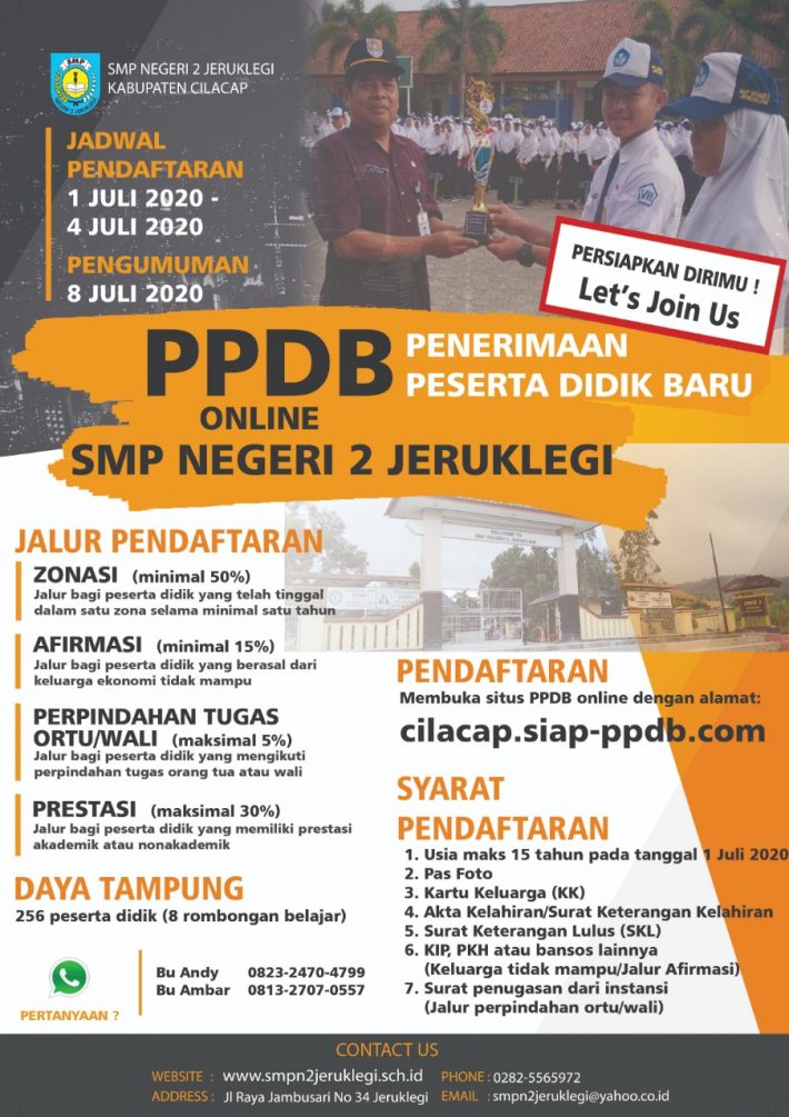 Informasi PPDB (Penerimaan Peserta Didik Baru) SMP Negeri 2 Jeruklegi Tahun Pelajaran 2019/2020